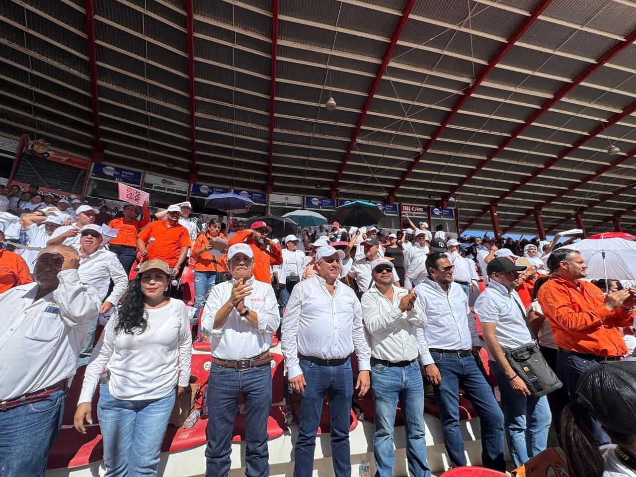 Docentes agremiados a la Sección 8 del Sindicato Nacional de Trabajadores de la Educación (SNTE), acompañaron y expresaron su respaldo a la Dra. Claudia Sheinbaum Pardo, Presidenta de los Estados Unidos Mexicanos, durante su visita a la frontera chihuahuense para dar a conocer los alcances en favor de la sociedad mexicana dentro de su primer año de gobierno.