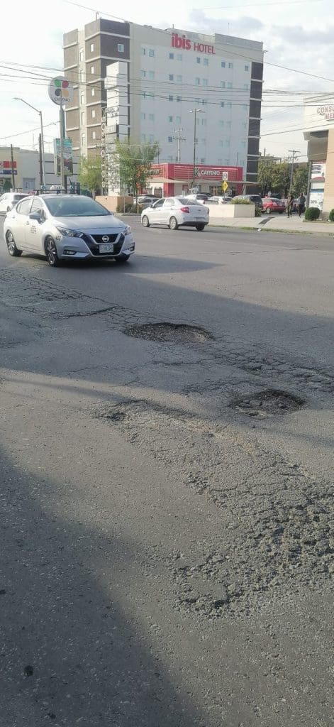 La unidad de Noticieros Radiorama reporto la presencia de varios mega baches sobre la avenida Tecnológico, uno de ellos sobre las calles Jesús García y Ejército Mexicano, en el sentido de sur a norte, lo que ha provocado constantes daños a los vehículos que circulan por la zona.