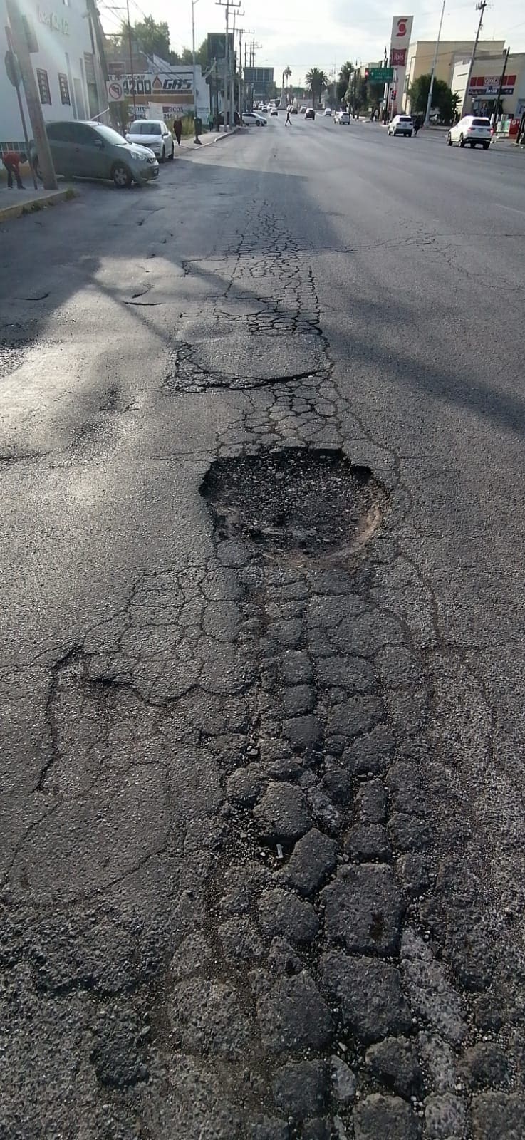 La unidad de Noticieros Radiorama reporto la presencia de varios mega baches sobre la avenida Tecnológico, uno de ellos sobre las calles Jesús García y Ejército Mexicano, en el sentido de sur a norte, lo que ha provocado constantes daños a los vehículos que circulan por la zona.