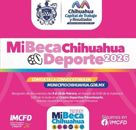 La convocatoria la podrán consultar a partir de la presente en la página https://www.municipiochihuahua.gob.mx/CCS/Convocatorias/CONVOCATORIA_MI_BECA_CHIHUAHUA_DEPORTE_2026.