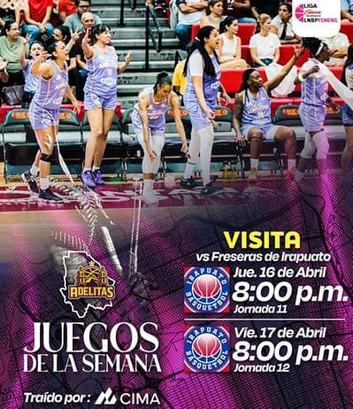Adelitas de Chihuahua continúa de gira con los compromisos ante Freseras de Irapuato este jueves 16 y viernes 17 de abril con ambos cotejos programados a las 20:00 horas en el Inforum Irapuato.