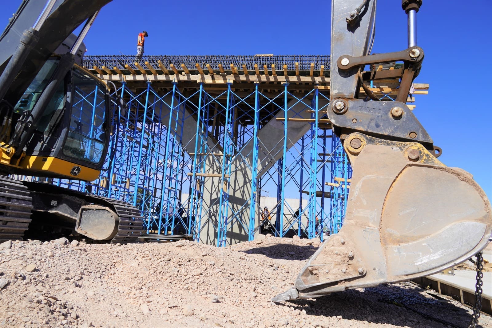 A través de la Dirección de Obras Públicas, se dio a conocer que actualmente diversas cuadrillas trabajan en el cimbrado y colado de las columnas que sostendrán el puente, así como en los detalles de las rampas que permitirán la conexión vial.