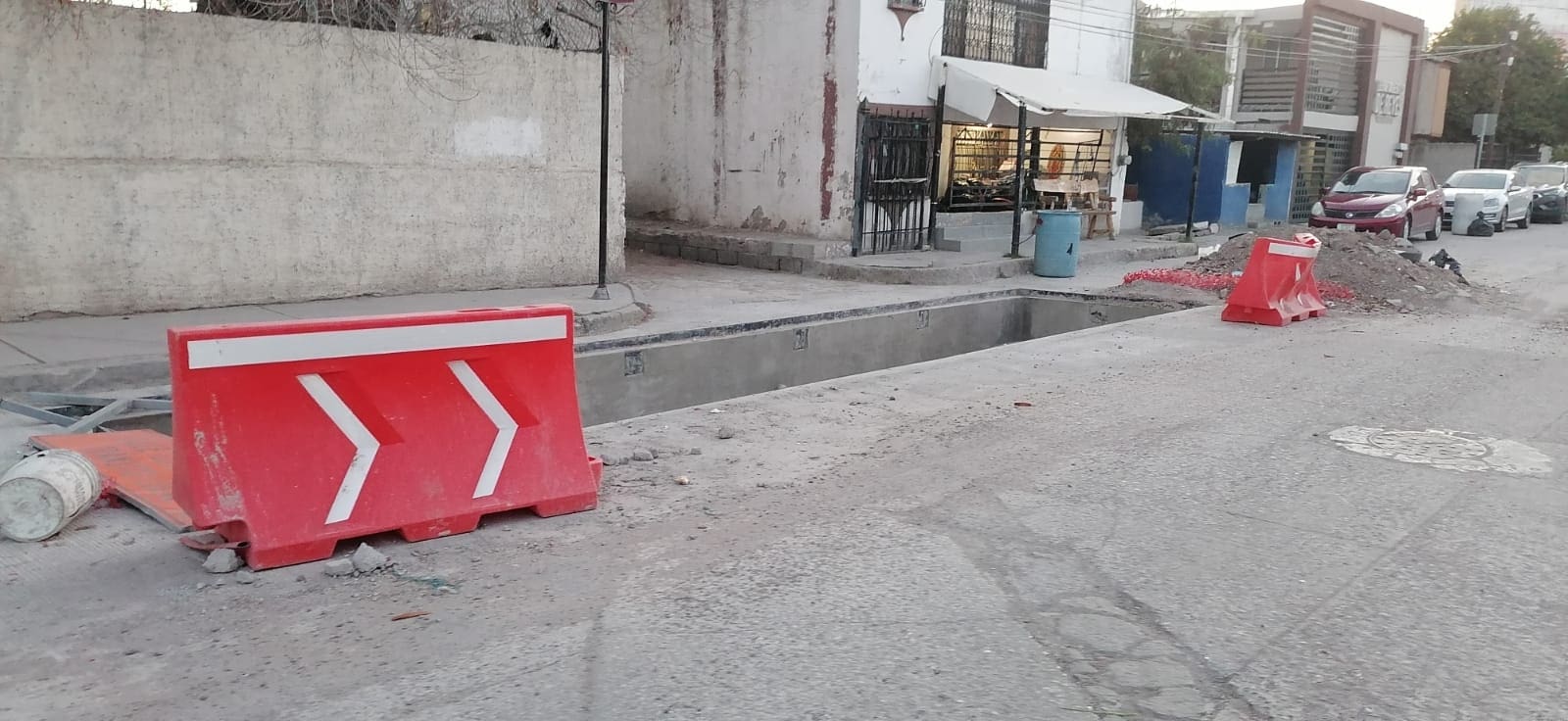 Uno de los focos de atención se localiza en la calle Ejército Mexicano y 8 de Octubre, a espaldas del Hospital General, donde existen zanjas abiertas sin señalización adecuada, lo que representa peligro para automovilistas y transeúntes.