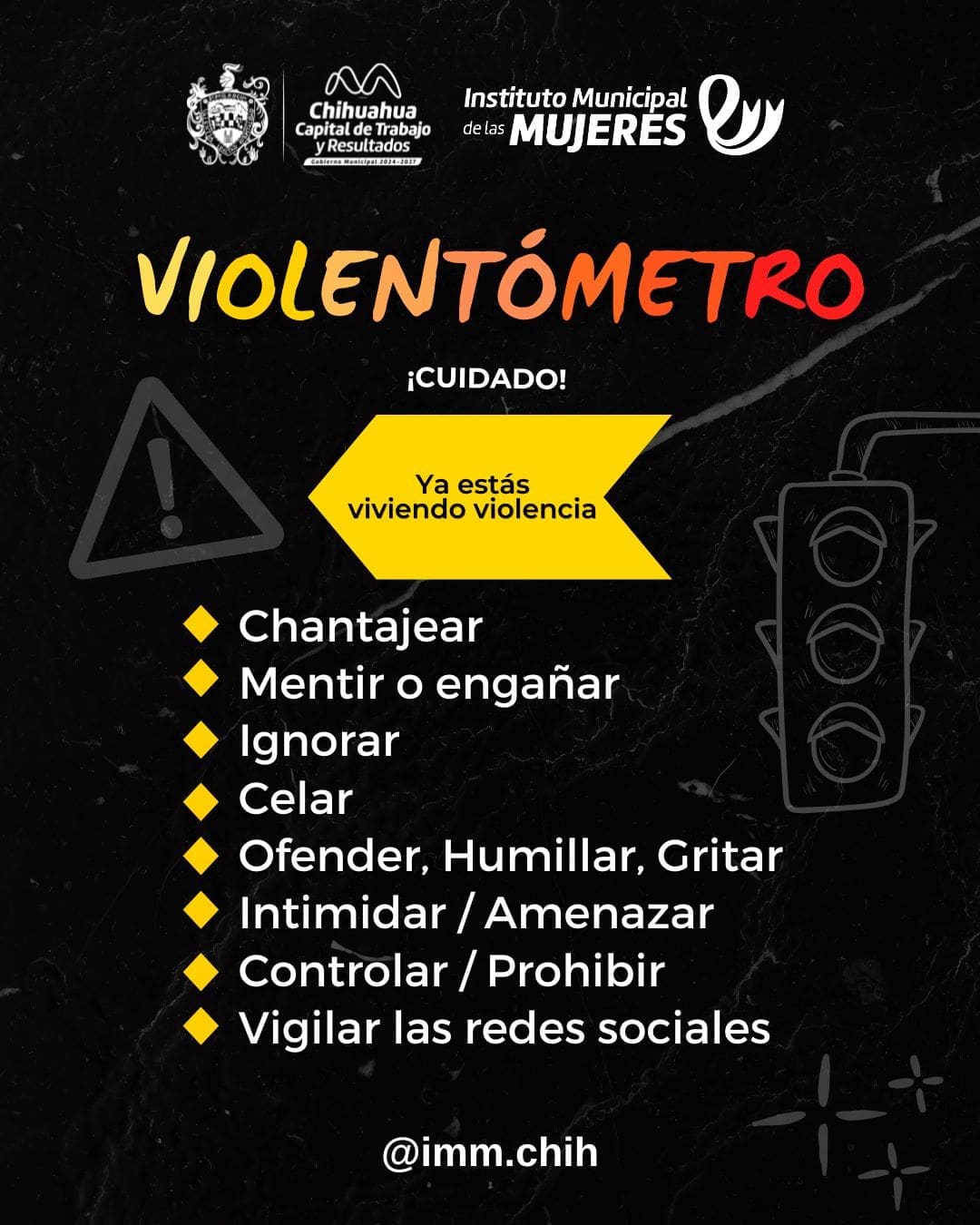 El Instituto Municipal de las Mujeres de Chihuahua, emitió un llamado a la población para identificar y no normalizar conductas que representan violencia contra las mujeres.