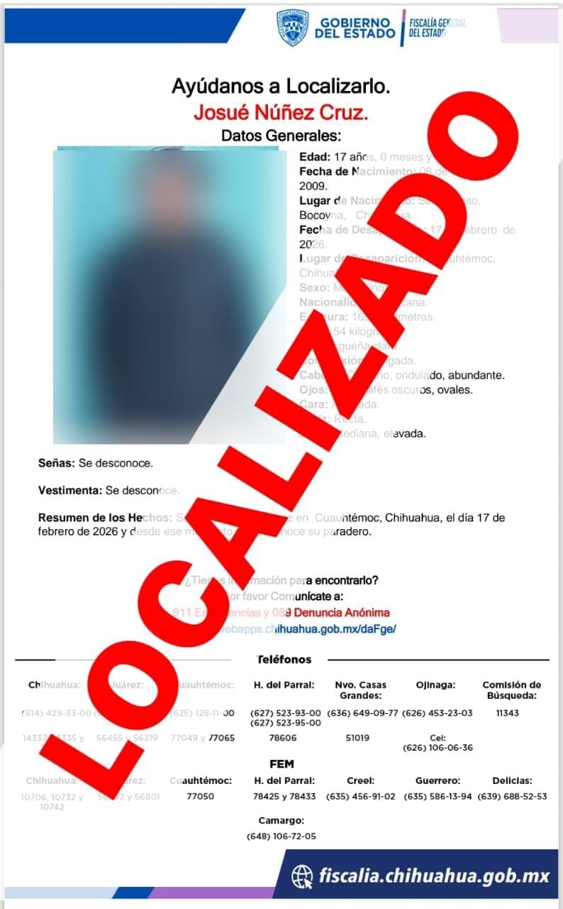 La Fiscalía de Distrito Zona Occidente informó que localizó a salvo a dos de tres menores de edad, quienes habían sido reportados desaparecidos el pasado 17 de febrero del 2026 luego de salir del albergue en el que se encontraban.