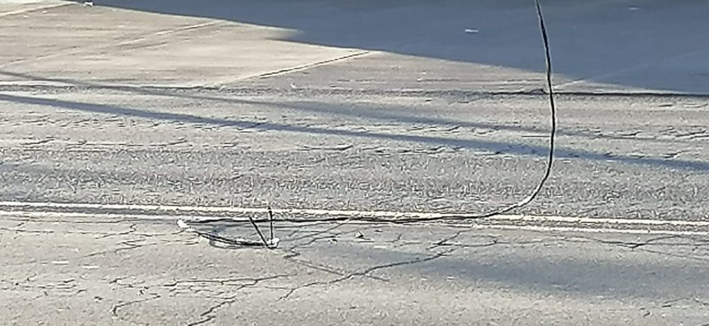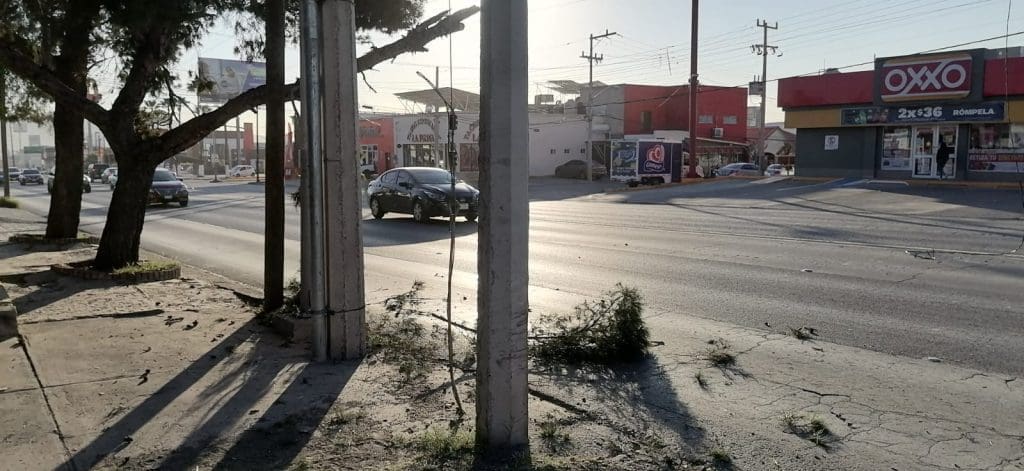 Tras el golpe, varias ramas quedaron esparcidas en el carril extremo derecho, mientras que algunos cables fueron arrancados y permanecen colgando sobre el carril central, lo que representa un riesgo para los automovilistas.