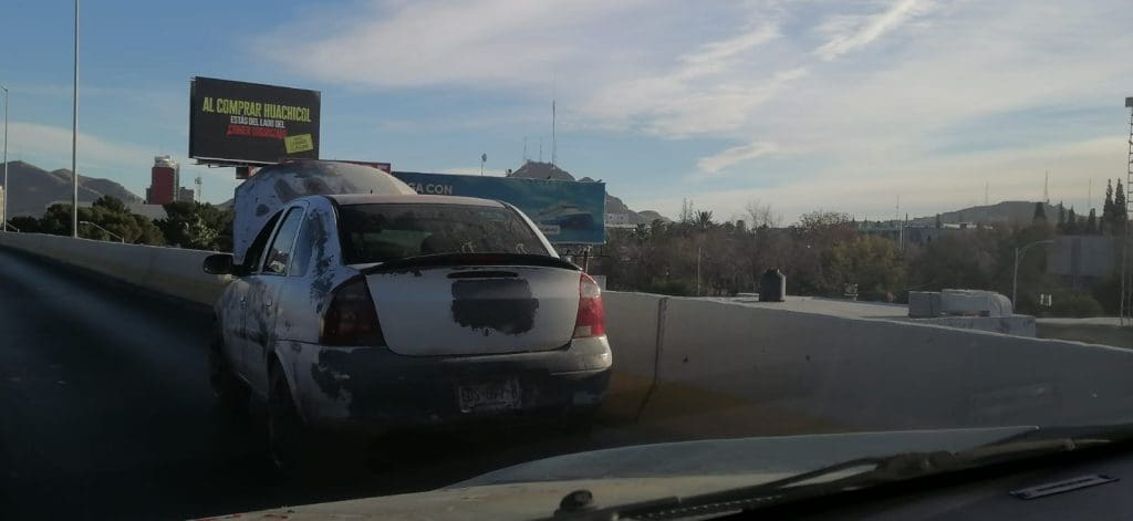 Metros más adelante, otro automóvil perdió una llanta delantera, avanzó sin control algunos metros y terminó deteniéndose contra el muro de contención, en el cruce de Teófilo Borunda y la Avenida Independencia.