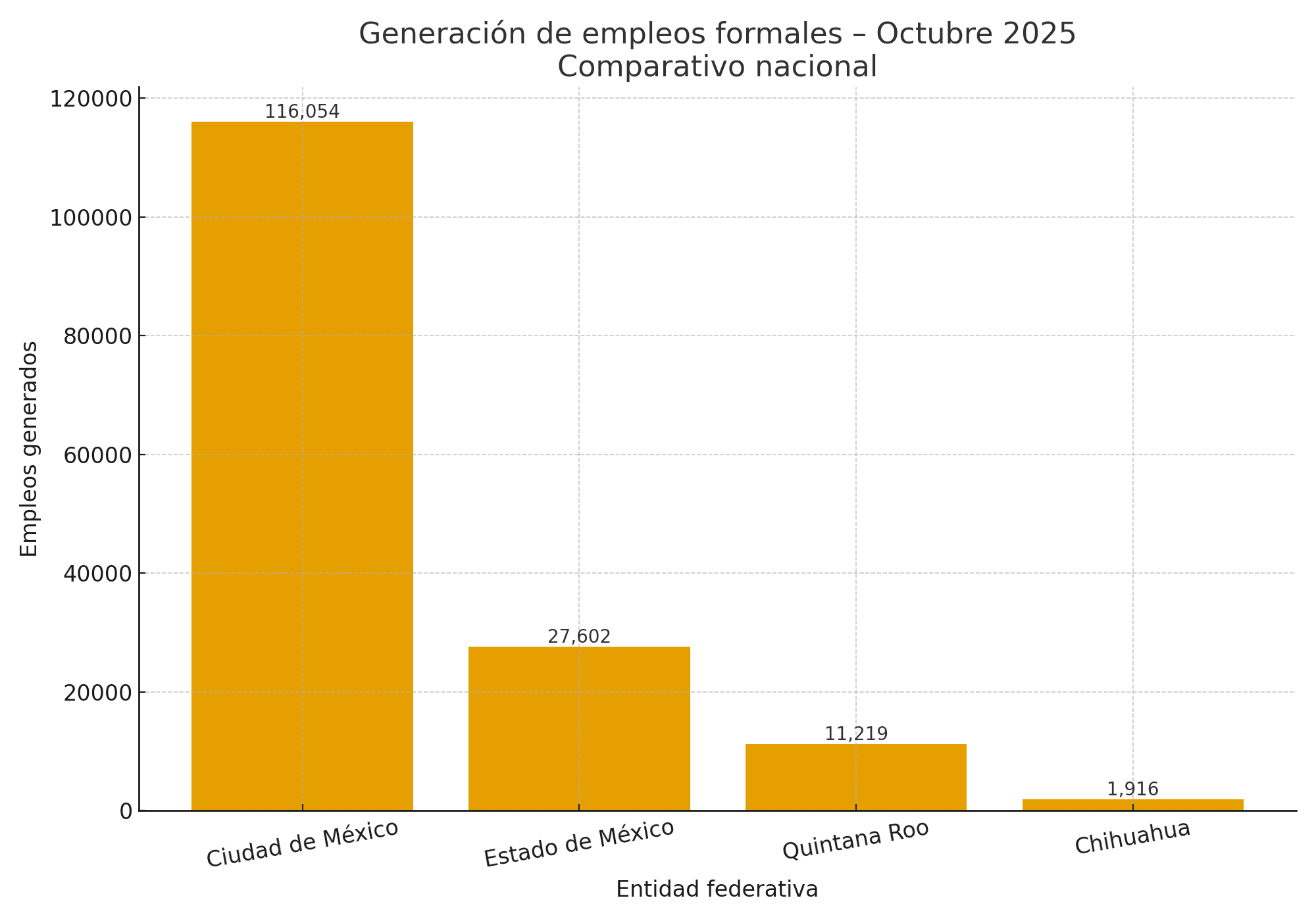 En el acumulado de enero a octubre de 2025, Chihuahua suma 8,232 empleos formales generados.