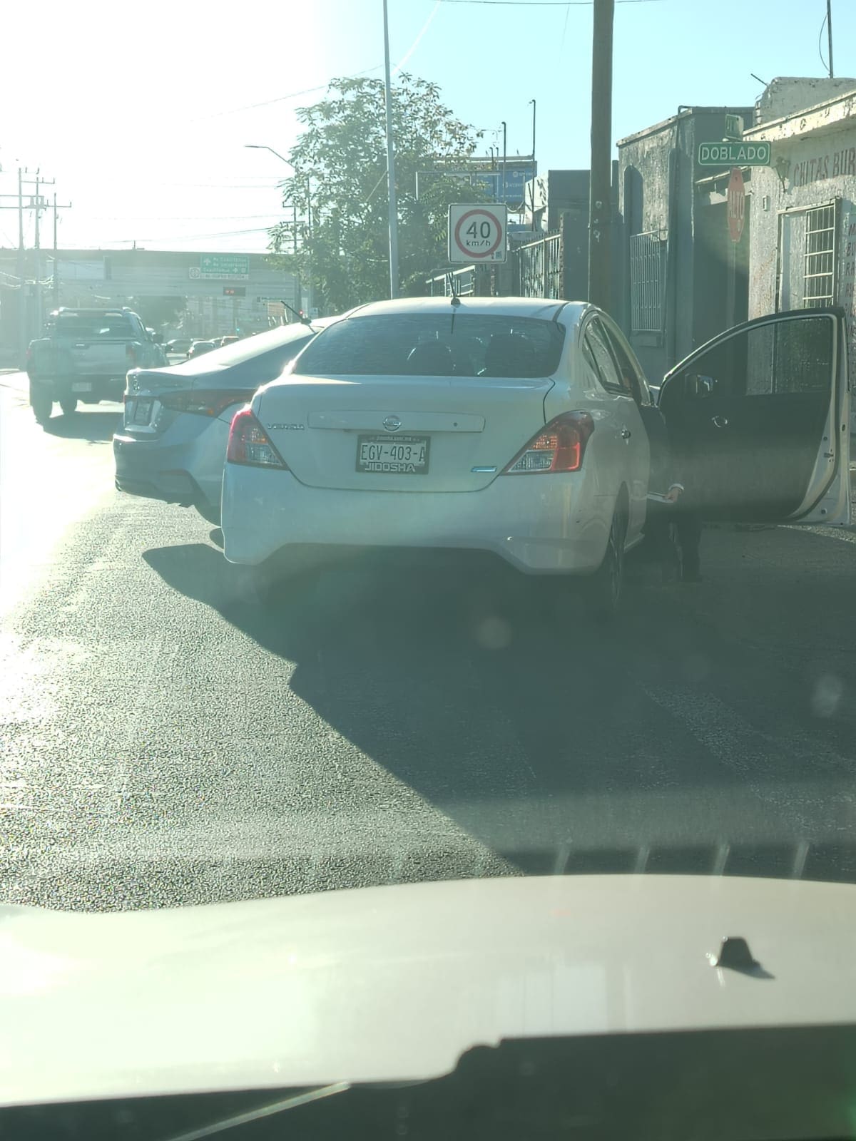 Esta mañana se registró un choque entre un Nissan Versa y un Hyundai en la intersección de las calles Mirador y Doblado, lo que provocó afectaciones momentáneas a la circulación.