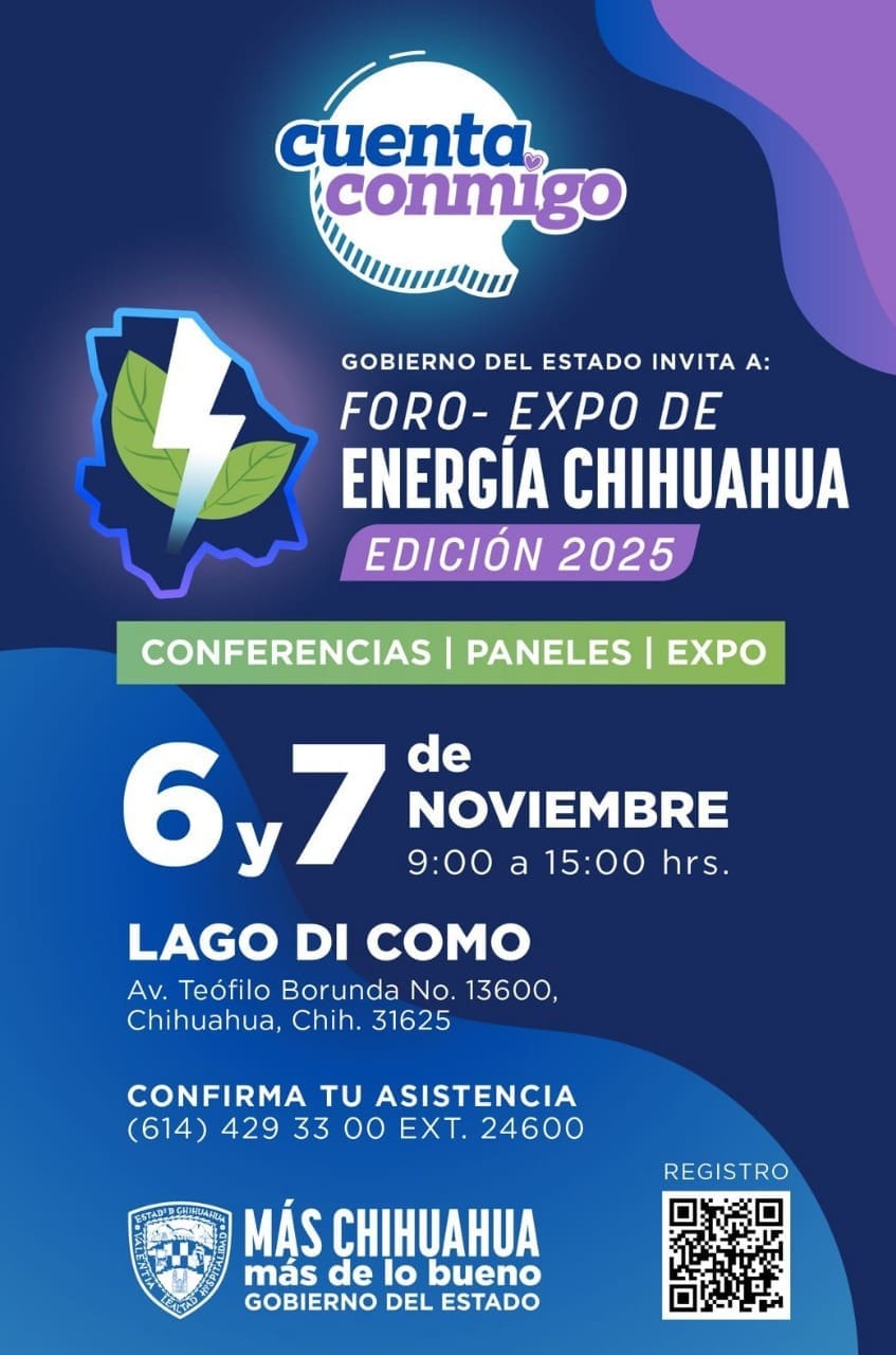 El Foro-Expo de Energía Chihuahua 2025 llega a la ciudad de Chihuahua con un evento gratuito, en el que se darán a conocer los avances e iniciativas relacionadas al futuro energético del estado grande.