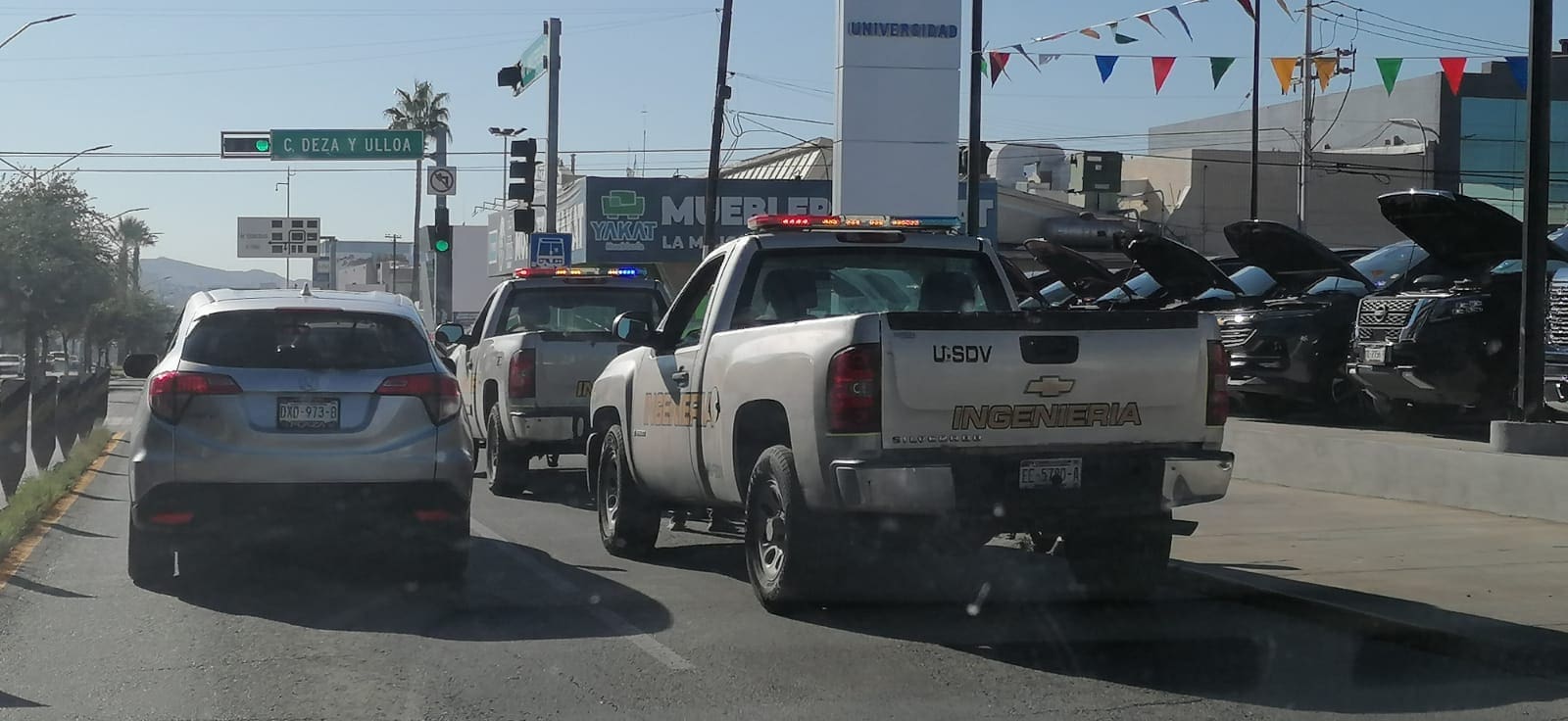 Esta mañana, una camioneta de Ingeniería Vial quedó varada en plena avenida Universidad y Deza y Ulloa, con dirección de norte a sur.
