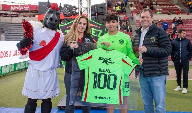 Nuestro futbolista y canterano Denzell García recibió en el partido de ayer un reconocimiento por disputar 100 partidos oficiales con los colores de FC Juárez.