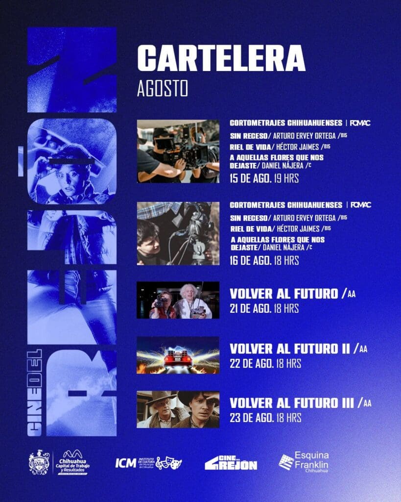 El público podrá disfrutar de tres funciones dedicadas al cine chihuahuense con producciones realizadas a través del programa FOMAC, así como la proyección completa de la trilogía Volver al Futuro.