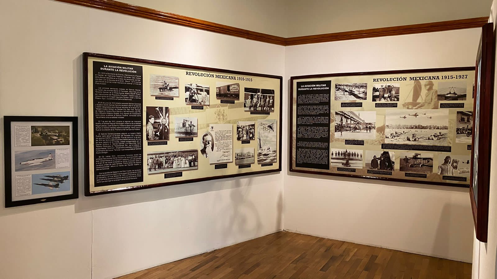 La exposición muestra la historia de la Fuerza Aérea Mexicana desde sus inicios en 1915, quienes fueron los pilotos pioneros en la aviación de nuestro país, así como algunos detalles importantes de esta institución.