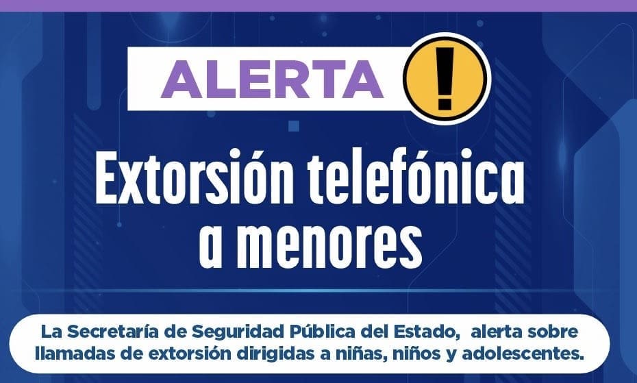 La Secretaría de Seguridad Pública del Estado (SSPE) emitió una alerta preventiva ante un nuevo modus operandi de extorsión telefónica que tiene como objetivo principal a menores de edad, detectado a través de reportes ciudadanos en distintas zonas de la entidad.