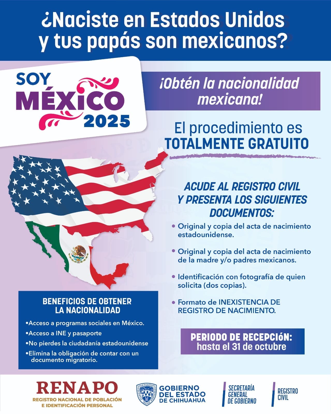 La Secretaría General de Gobierno lanzó el programa «Soy México» para facilitar que hijos de mexicanos nacidos en Estados Unidos obtengan su nacionalidad mexicana.