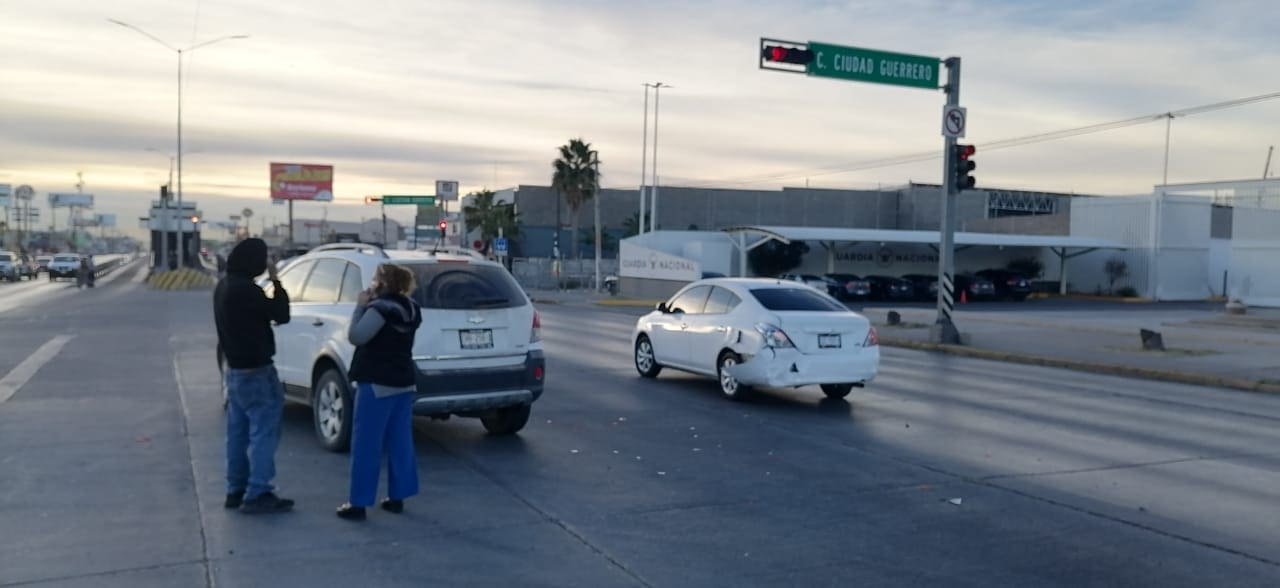 La Unidad Móvil de Noticieros Radiorama reportó un fuerte choque registrado en el cruce de la calle Ciudad Guerrero y la avenida Tecnológico, justo frente a las instalaciones de la Guardia Nacional.