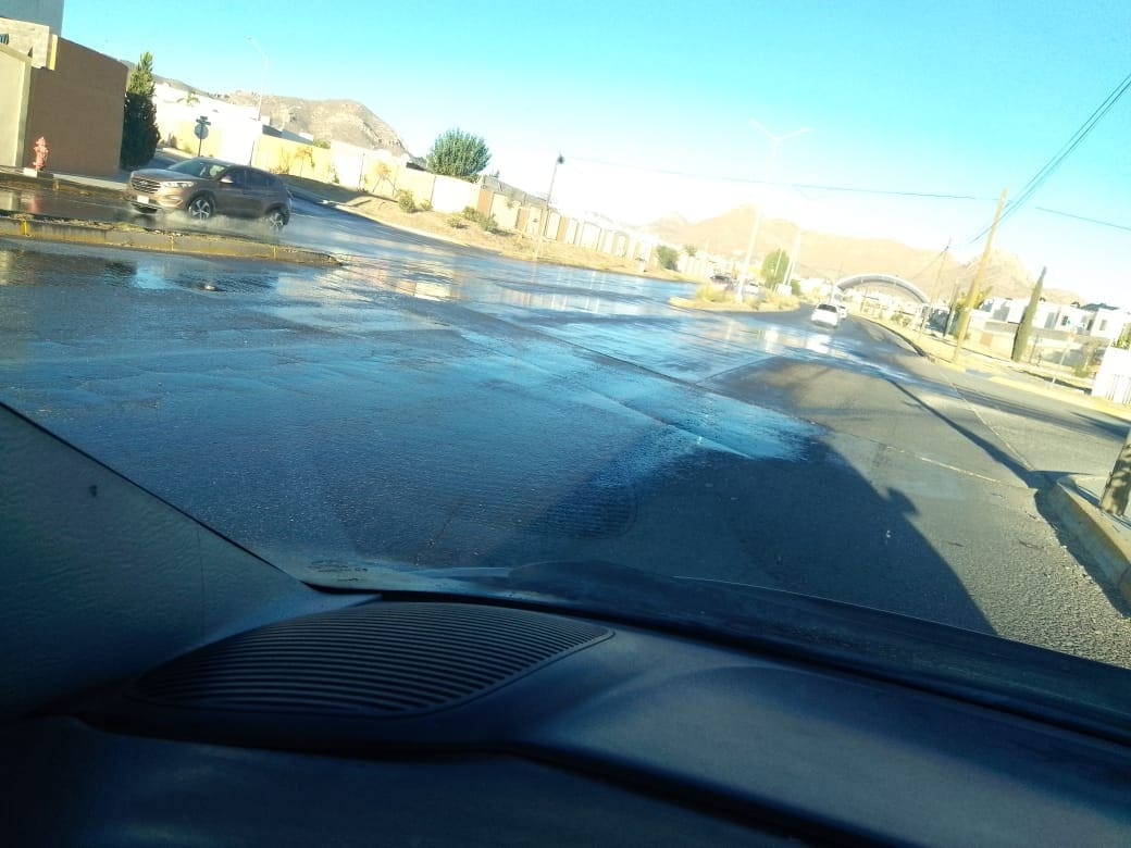 De acuerdo con las imágenes enviadas a esta redacción, el escurrimiento ya abarca varios carriles y se dirige hacia la zona habitacional, lo que podría provocar daños al pavimento y riesgos para automovilistas que transitan por el sector.