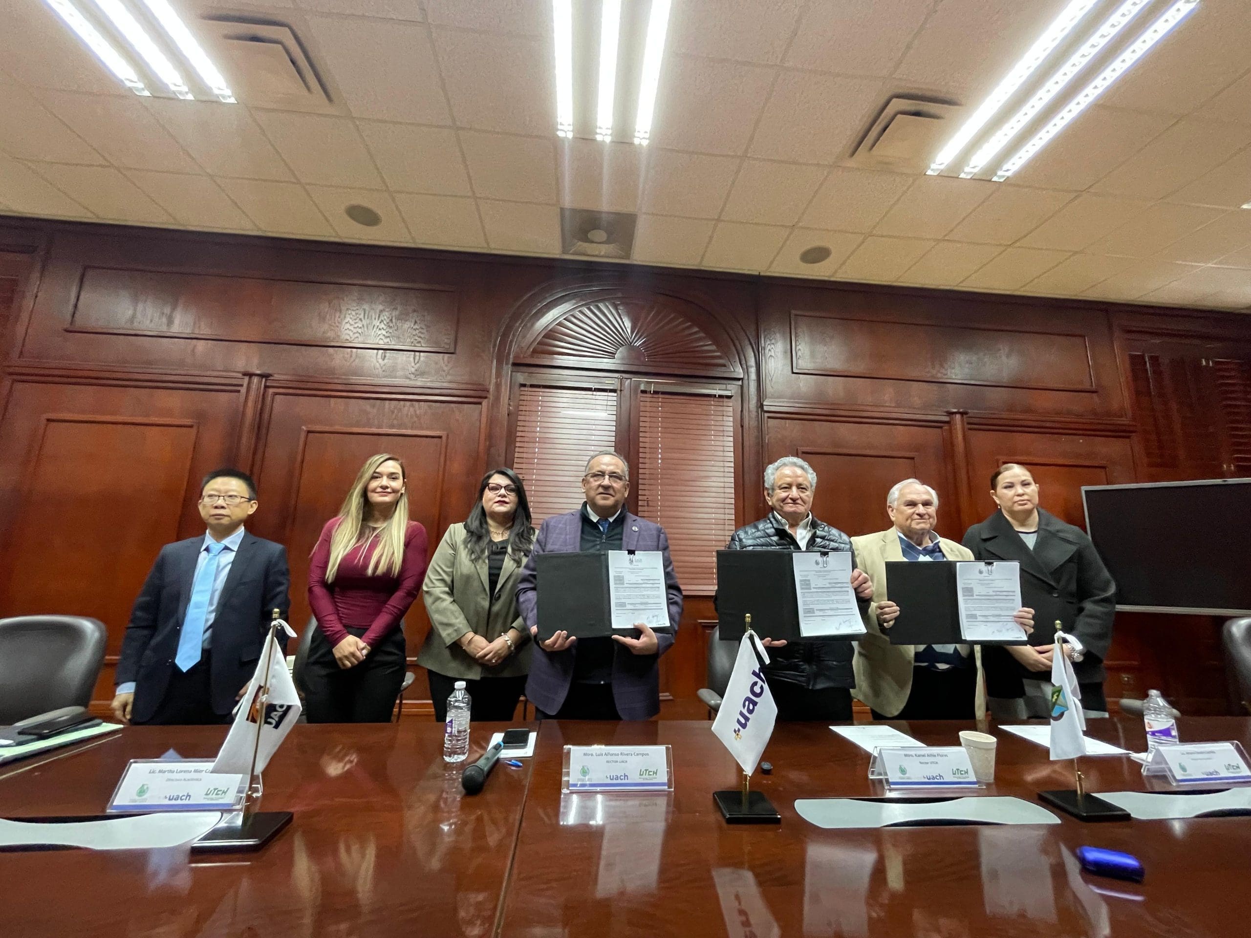 Los rectores de la Universidad Autónoma de Chihuahua (UACH), Luis Alfonso Rivera Campos, y de la Universidad Tecnológica de Chihuahua (UTCH), Kamel Athie Flores, firmaron este jueves un convenio de colaboración para impartir clases de chino mandarín en la UTCH a través del Instituto Confucio.