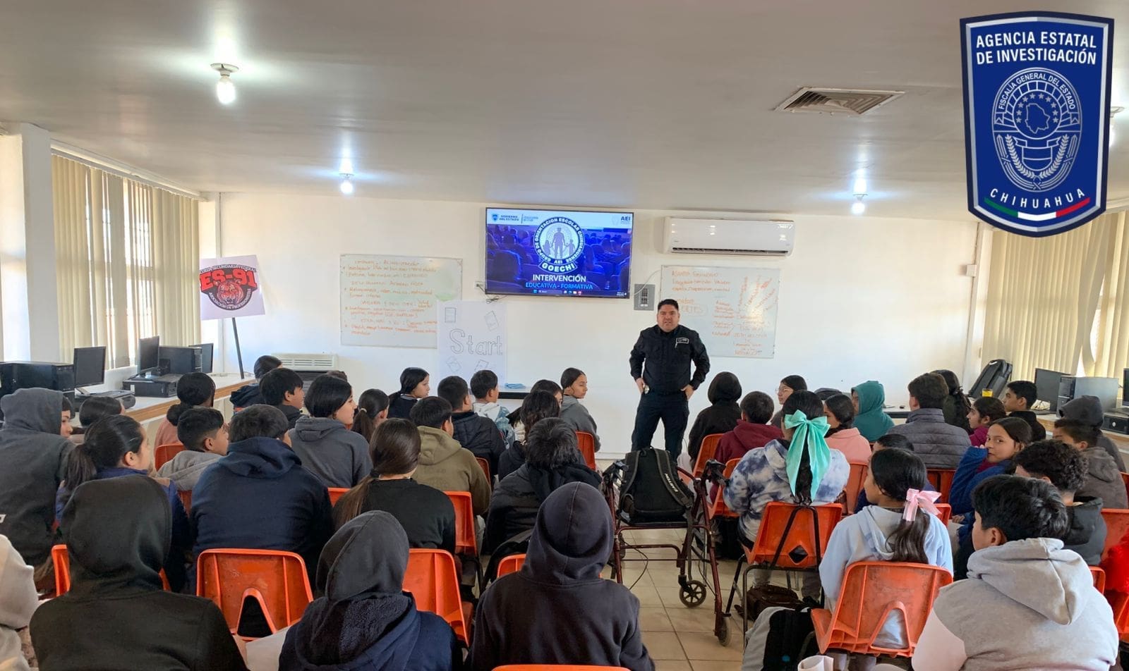 Elementos de la Agencia Estatal de Investigación (AEI), adscritos al Grupo de Orientación Escolar Chihuahuense, en la Fiscalía de Distrito Zona Noroeste, continúan con actividades en la Secundaria Federal No. 91, del municipio de Nuevo Casas Grandes, con varias pláticas preventivas en temas de grooming, redes sociales y los distintos riesgos cibernéticos.