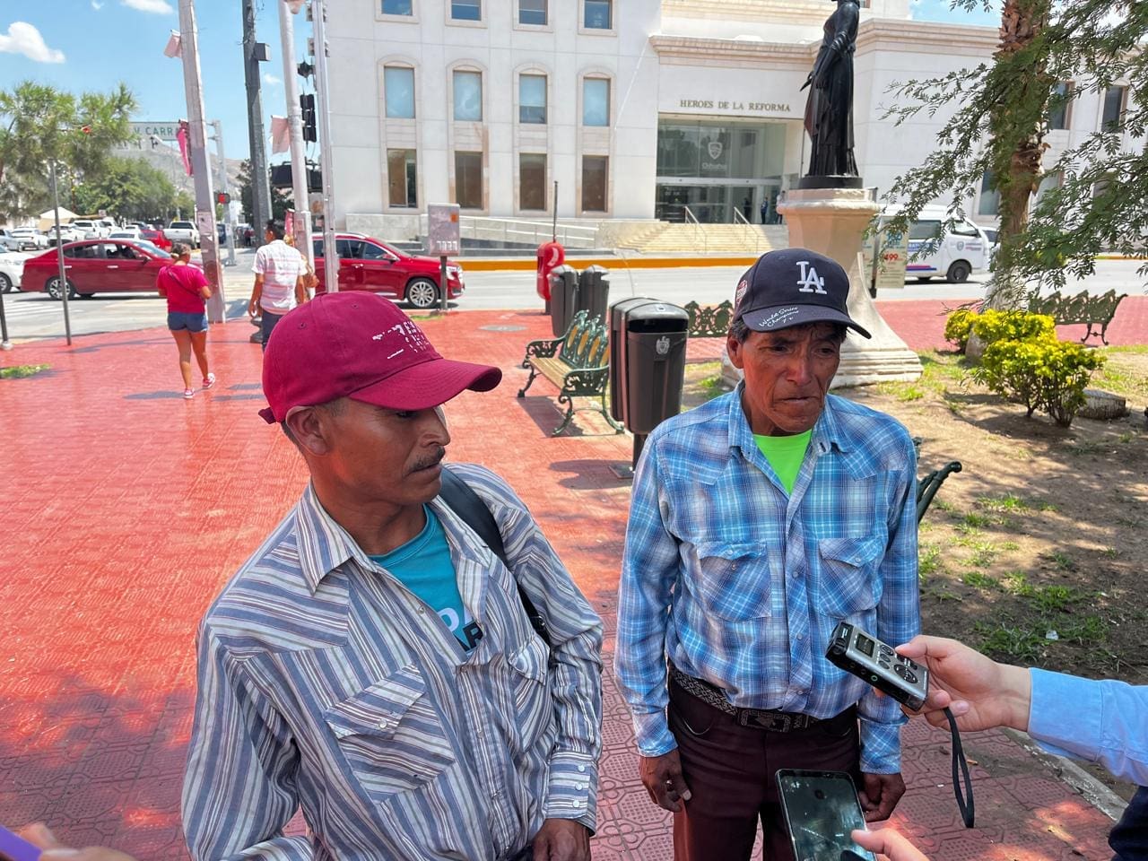 Pedro Cruz Barraza, comisario ejidal, y Lorenzo Bustillos, siríame, viajaron hasta la capital del estado para exigir que los servicios de salud lleguen directamente a su comunidad.