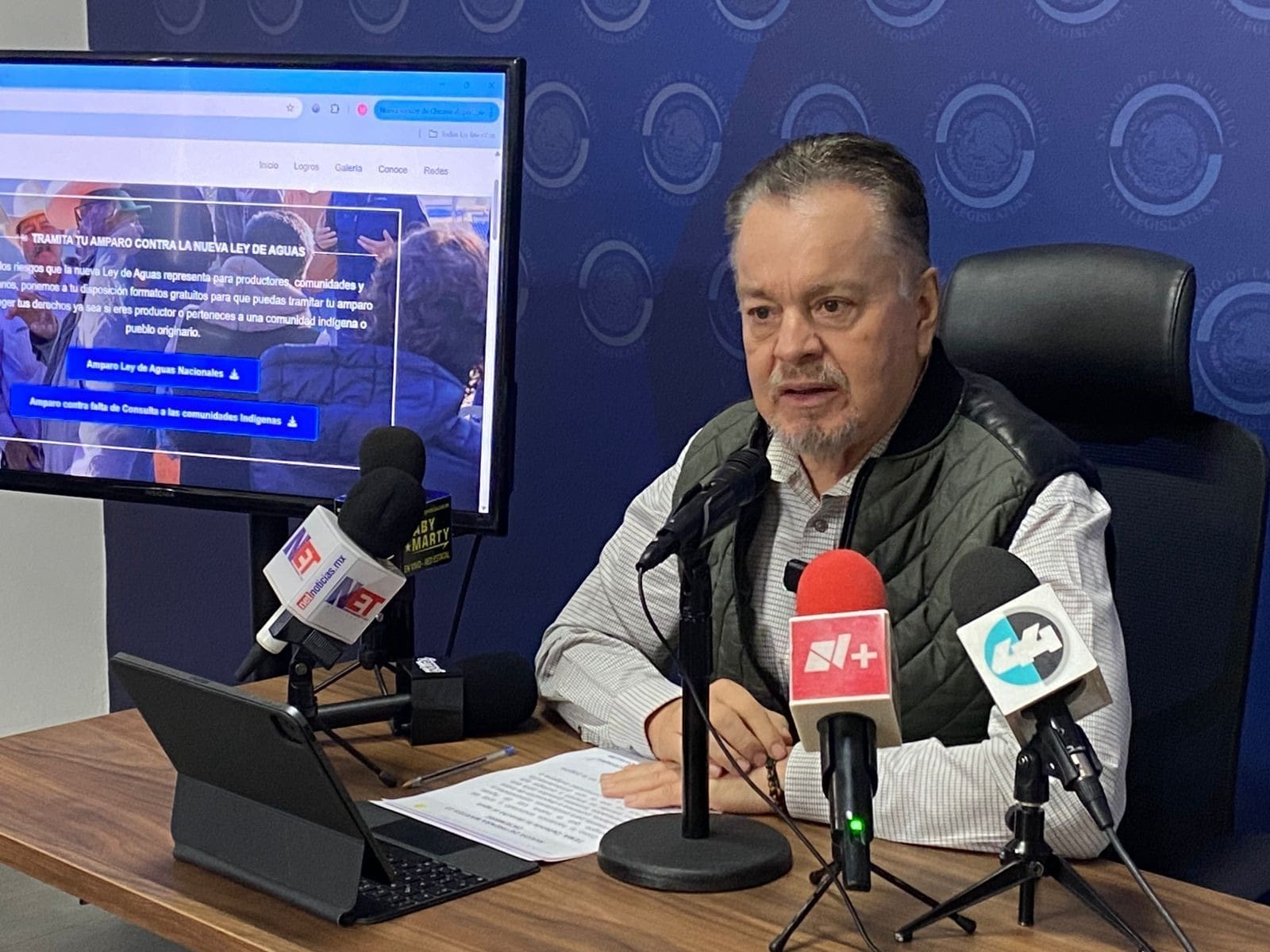 Respecto al amparo contra la Ley de Aguas Nacionales, el senador detalló que puede ser promovido por personas físicas y morales, titulares de concesiones o asignaciones de agua, productores agrícolas y ganaderos, así como propietarios de tierras vinculadas a derechos de uso de agua, siempre que acrediten un interés legítimo por una posible afectación directa.