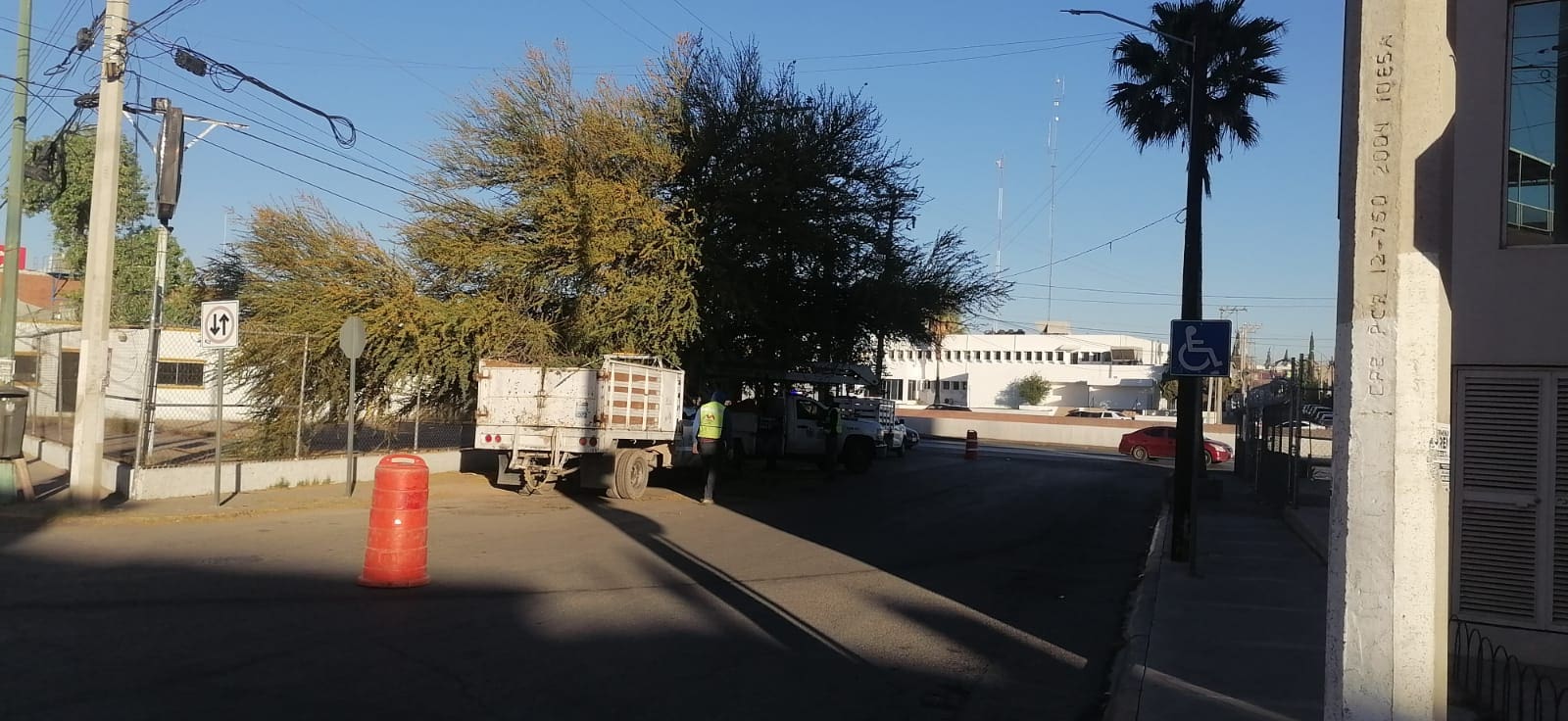 La Unidad Móvil de Noticieros Radiorama reportó que en la avenida Teófilo Borunda, con dirección a Vialidad Sacramento, se realizan trabajos de poda de un árbol como parte de la instalación de una línea eléctrica, lo que está generando afectaciones en la circulación.