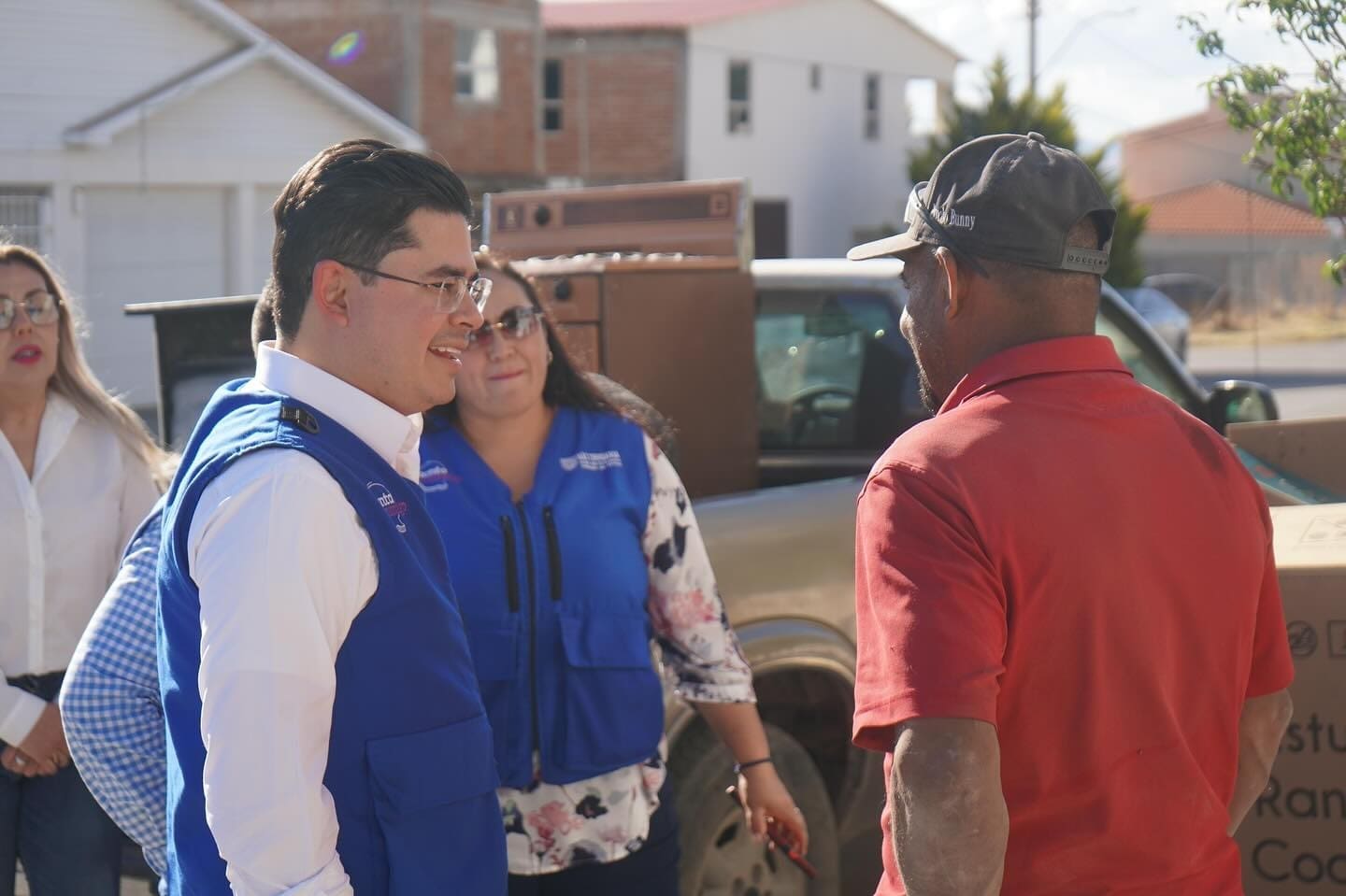 Con el objetivo de escuchar a las familias de la región noroeste, el secretario de Desarrollo Humano y Bien Común, Rafa Loera, realizó un recorrido por calles del municipio de Cuauhtémoc, acompañado de los llamados «Chalecos Azules».