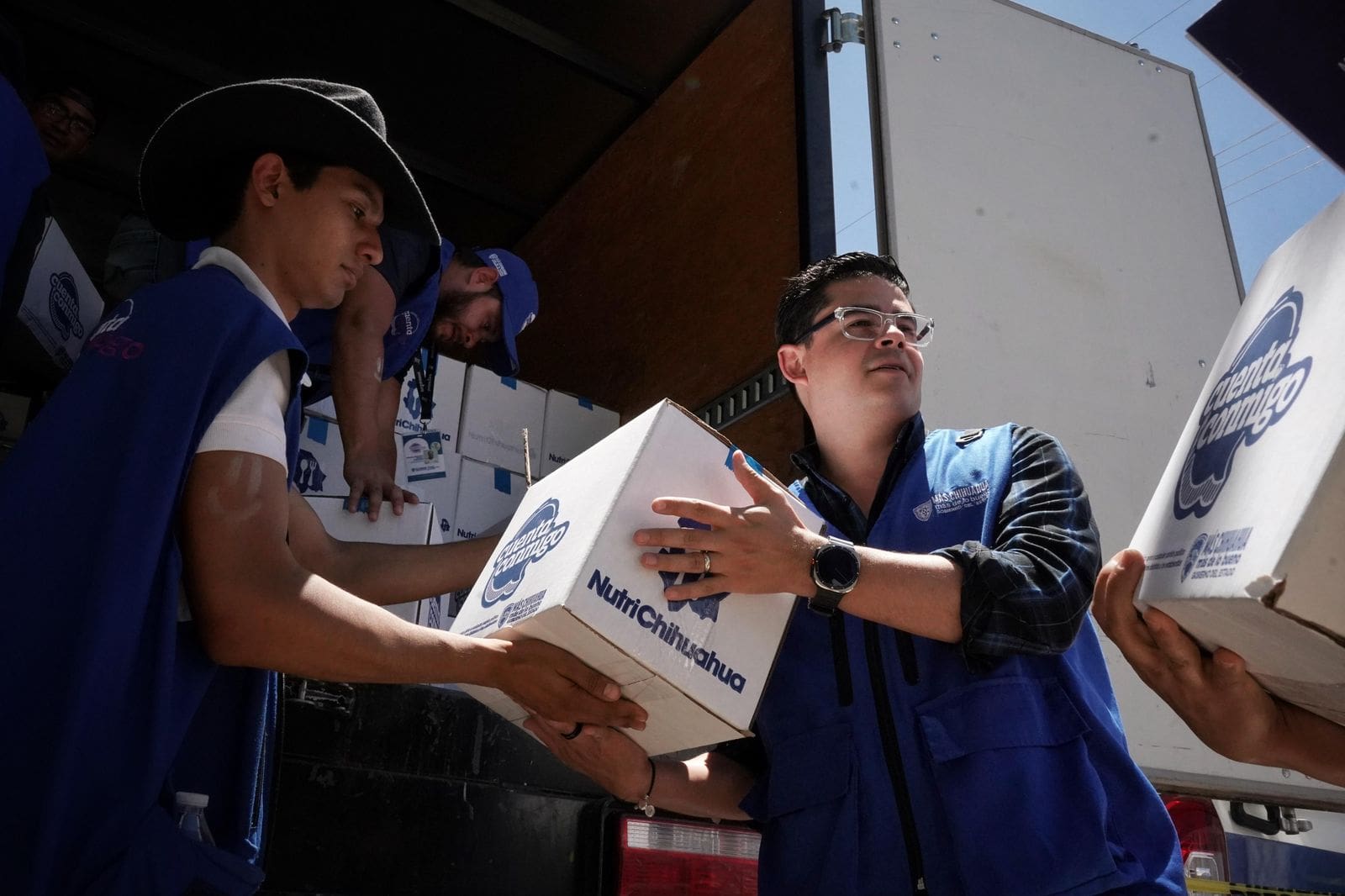 El secretario de Desarrollo Humano y Bien Común, Rafael Loera, entregó despensas del programa NutriChihuahua a familias en situación vulnerable de Valle de Zaragoza.