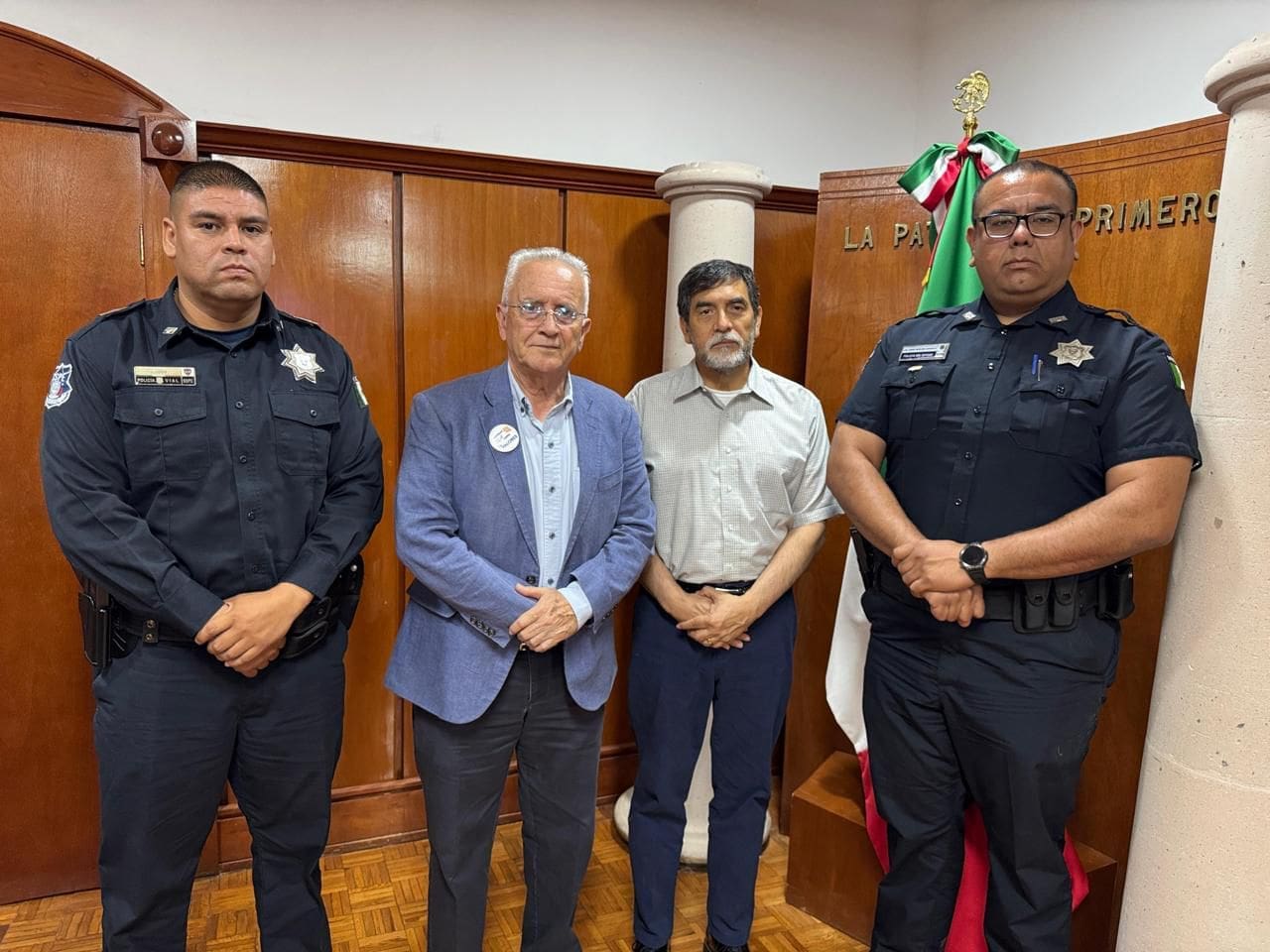El subsecretario de Movilidad, César Komaba, acudió el día de ayer al Municipio de Cuauhtémoc, para efectuar el relevo de mandos, dando salida al oficial Jaime Mejía y dejando el espacio para Jorge Aguilera, quien se desempeñaba en estas mismas labores en Nuevo Casas Grandes.