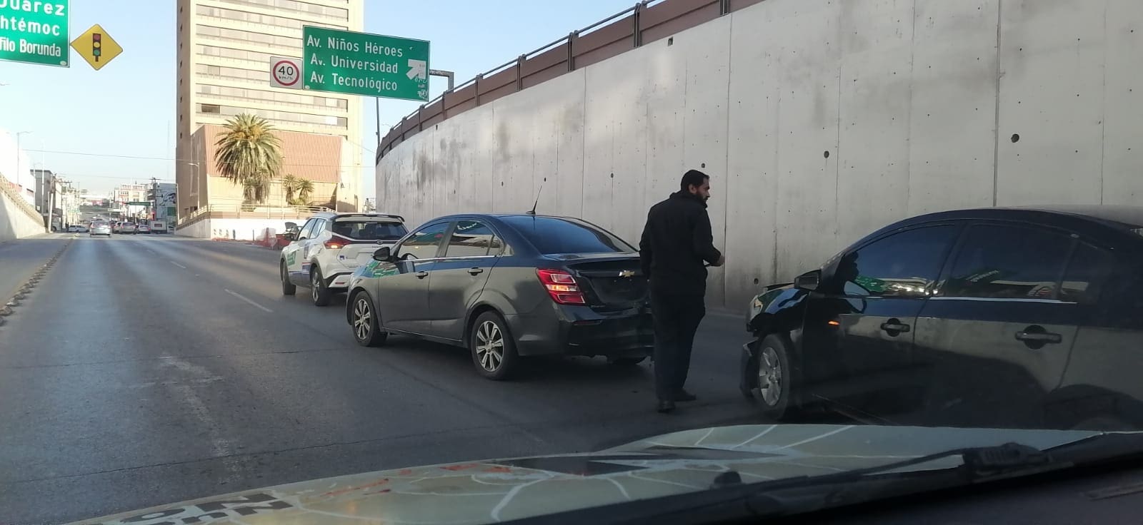 La mañana de este lunes se registró un fuerte choque vehicular sobre la avenida Independencia, al término del túnel antes de llegar a Niños Héroes.