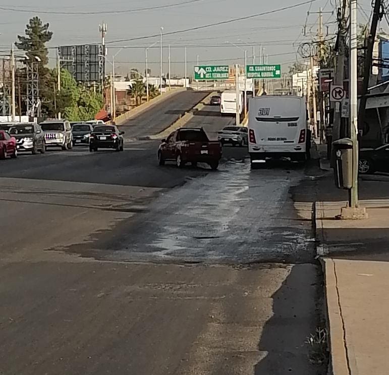 En el mismo punto, así como en el puente de Colón y Teófilo Borunda, se observa asfalto dañado y presencia de baches, lo que representa un riesgo para conductores, especialmente en horarios de mayor flujo vehicular.
