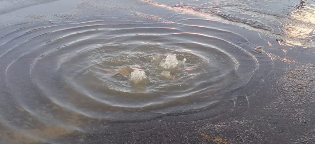 Automovilistas y vecinos señalaron que el encharcamiento cubre varios metros del carril, por lo que se recomienda manejar con precaución para evitar accidentes o daños en los vehículos.
