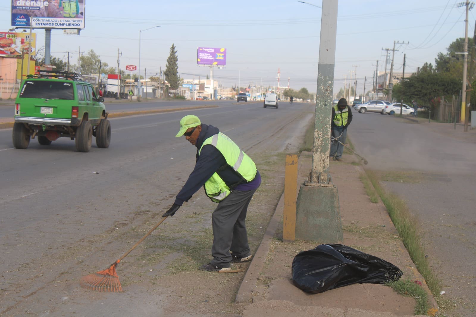 Estas acciones son posibles mediante el trabajo de las cuadrillas manuales que día a día mantienen esta labor con el corte de hierba, sopleteo, papeleo y pepena de las principales calles y avenidas.