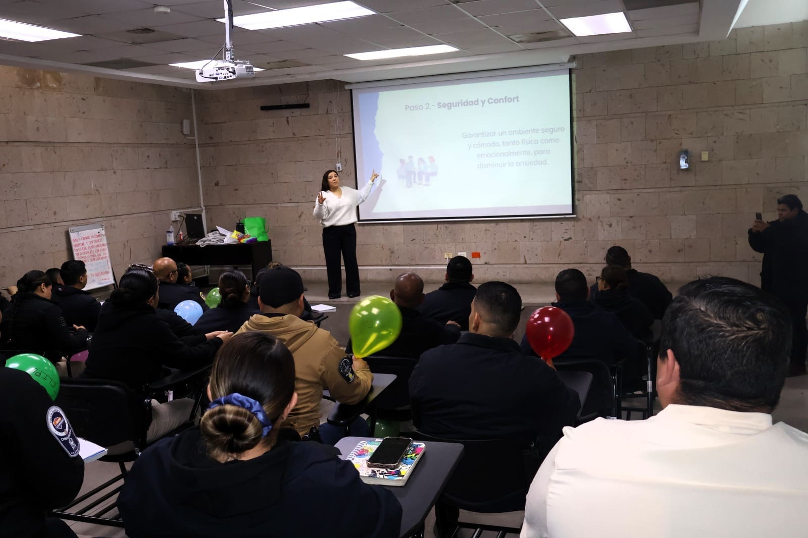 Durante el proceso formativo se abordan temas como perspectiva de género, empatía y calidez en la atención, con el objetivo de que los elementos policiales puedan ofrecer a la ciudadanía calma y un espacio seguro para enfrentar situaciones de crisis.