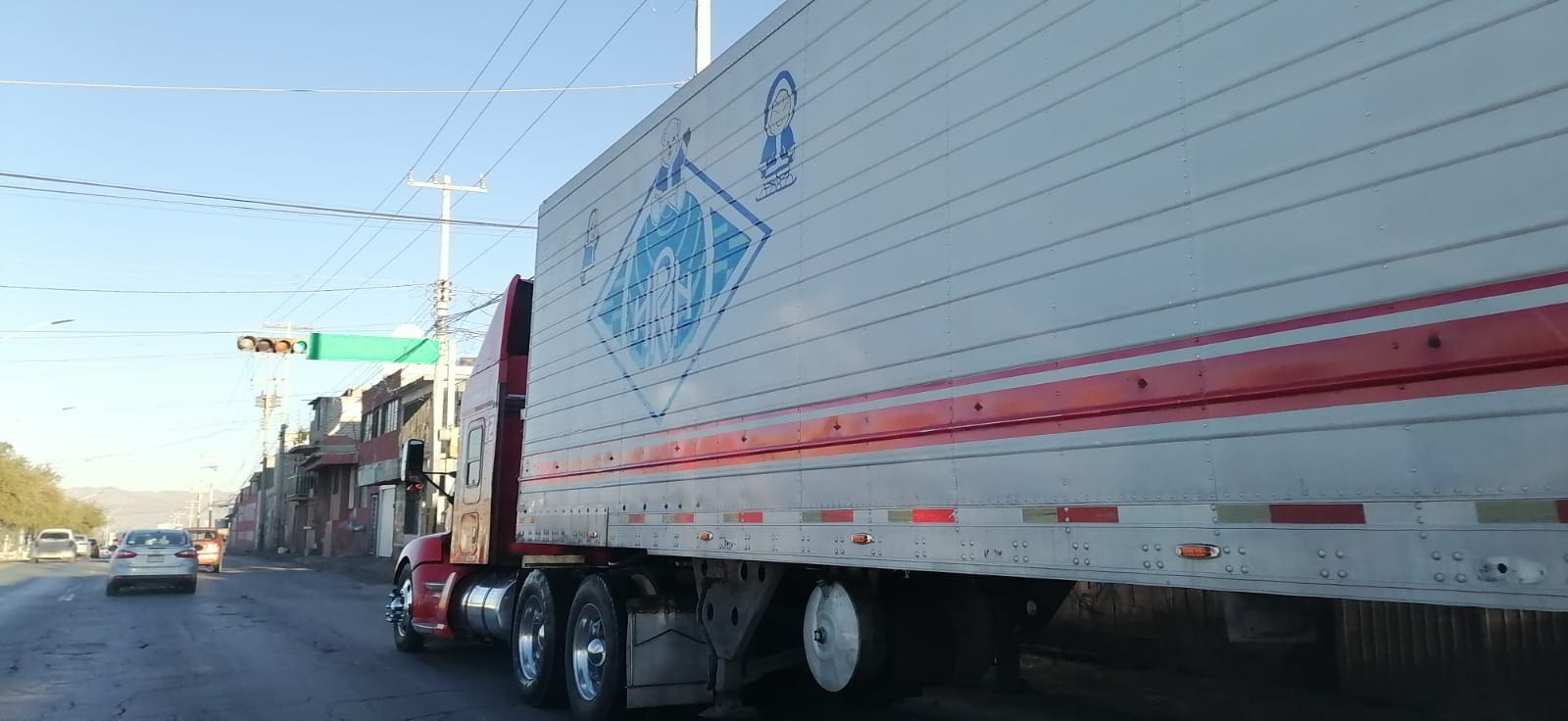 La Unidad Móvil de Noticieros Radiorama reporta caos vehicular en el cruce de avenida Pacheco y calle Urquidis, debido a un tráiler descompuesto.