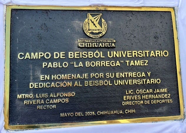Hoy, la Universidad Autónoma de Chihuahua honra esa vida de entrega y pasión al otorgar su nombre al campo de béisbol del Campus II, un espacio que será recordatorio permanente del legado de Pablo “La Borrega” Tamez Galindo: formador, mentor y símbolo del espíritu deportivo universitario.