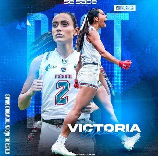 Victoria Chávez tiene 24 años, juega como defensiva y receptora, y además de su destacada carrera deportiva, actualmente cursa la maestría en Innovación y Desarrollo Empresarial en el Tecnológico de Monterrey. Su talento, disciplina y liderazgo la han convertido en una de las figuras más importantes del flag football a nivel mundial, disciplina que además formará parte de los Juegos Olímpicos de Los Ángeles 2028.